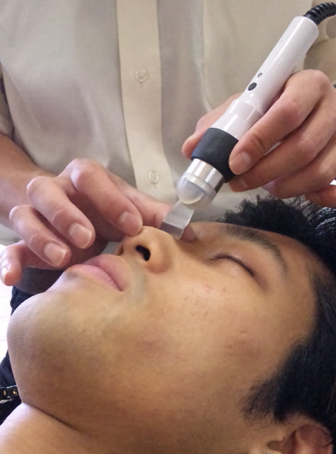 エクスフォリエーター<超音波クレンジング> 角質層を無理に剥がさず、皮脂や汚れだけを超音波の力で乳化させて取り除きます。 |